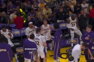 GIF-詹姆斯在替补席看数据表
