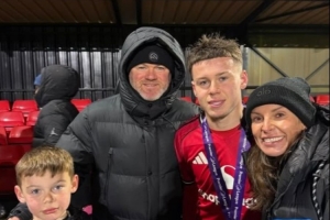 赛后,鲁尼在社媒晒出与科琳、凯以及另一个儿子卡斯的合影,同时还配了一个奖牌和一个红色爱心的表情符号。
