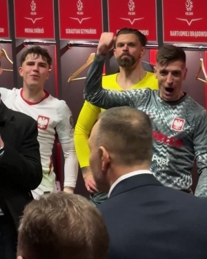体育资讯03月28日讯 世预赛欧洲区附加赛,波兰2-1力克阿尔巴尼亚,决赛将与瑞典争夺一张世界杯门票。波兰国家队赛后发布视频,波兰总统纳夫罗茨基来到更衣室,与球员共庆胜利。