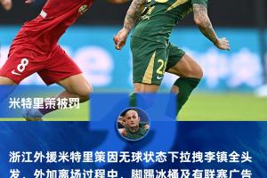 上一篇: 一下薅没50万!米特里策拽头发被中足联+浙江二连罚 总计罚了52万