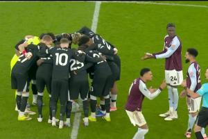切尔西的球员们围在中圈喊话助威,将皮球围在了中间,奥纳纳、沃特金斯都向裁判抱怨切尔西的行为,现场的维拉球迷也发出了嘘声。