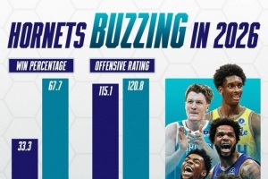 2026之前:胜率33.3%,进攻效率115.1,防守效率118.1,净效率-3.0。